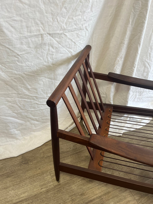 Banquette deux places scandinave en teck massif et daim 1970