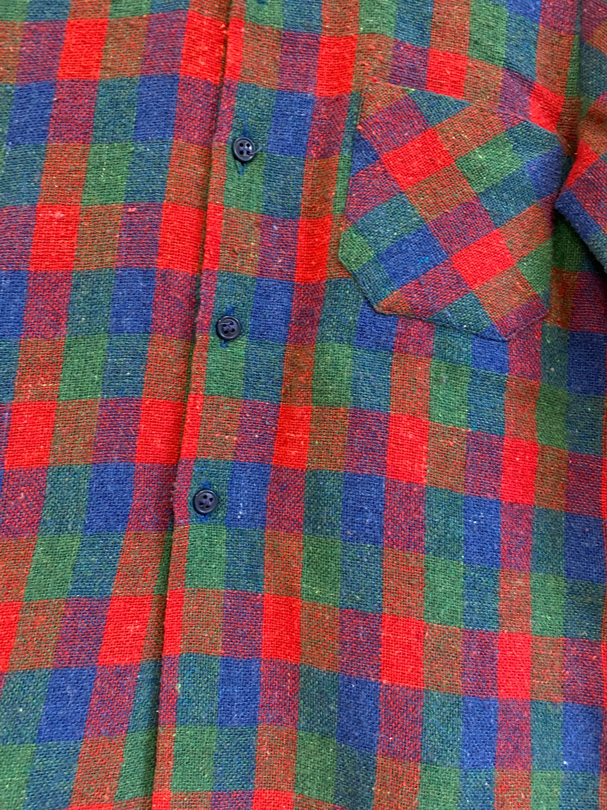 Chemise à carreaux, bleu, vert et rouge, une poche.