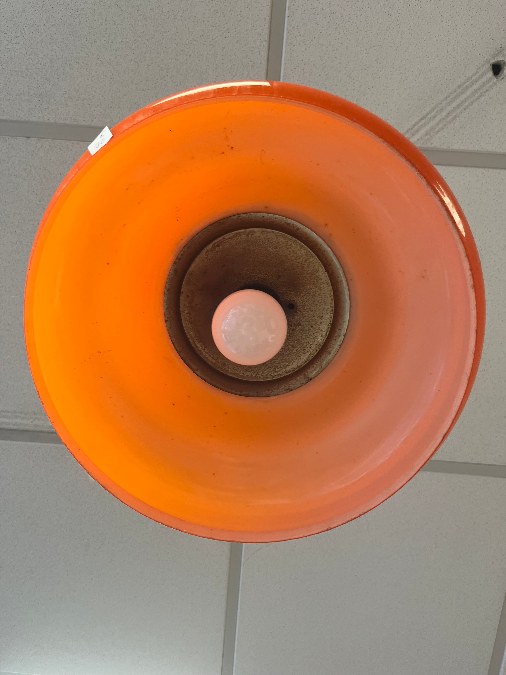 Lustre en céramique et opaline des années 70, orange et blanche,