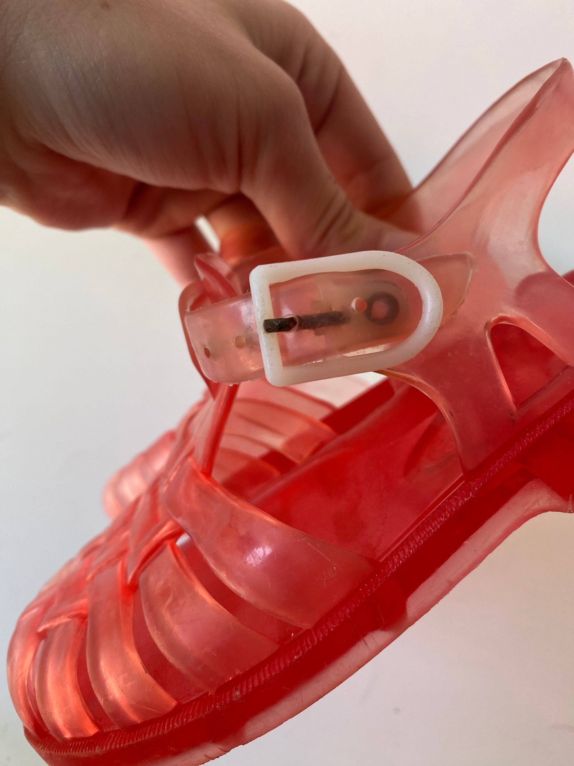 Sandales méduse rouge/rose, made in France.