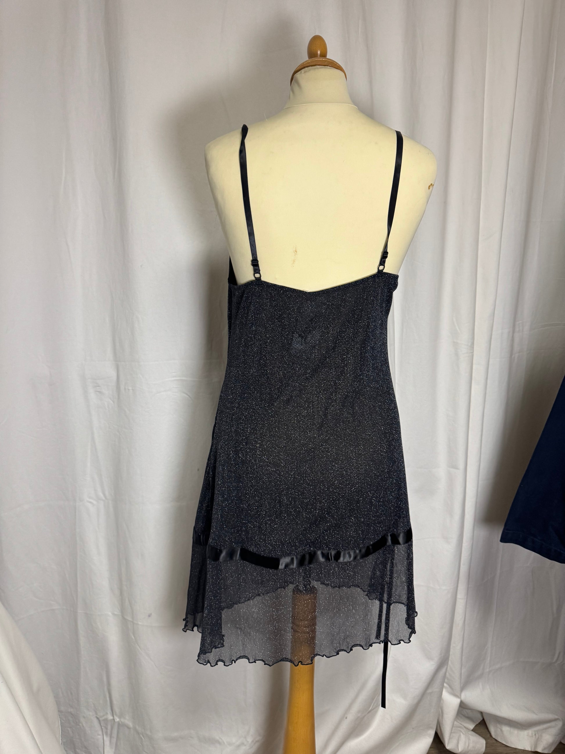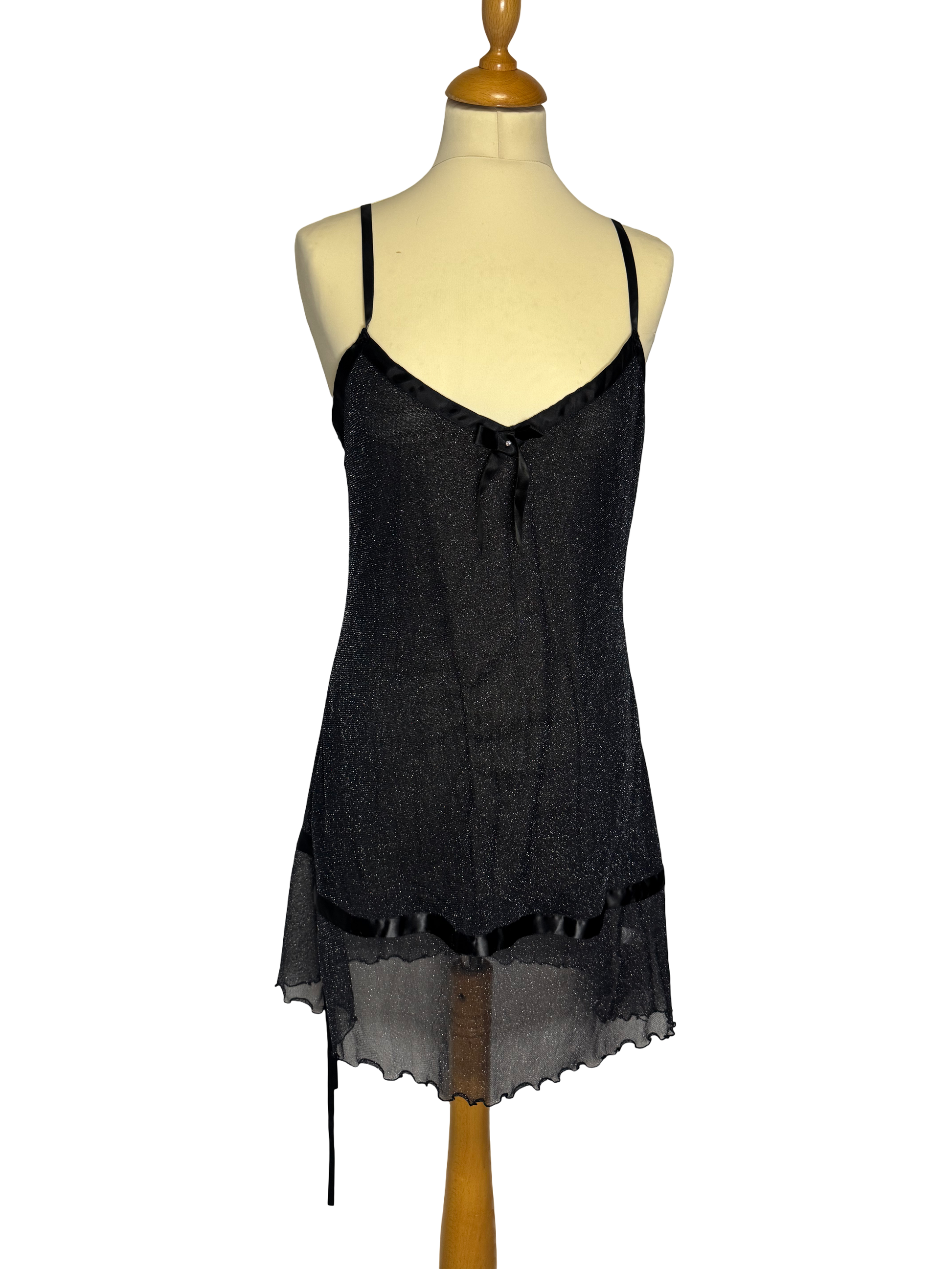 Nuisette à paillette argenté, noir, bretelle ajustable.