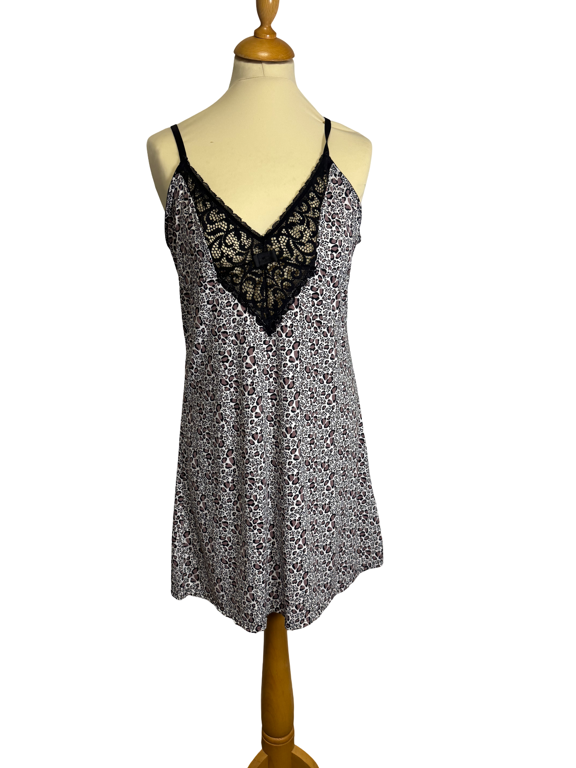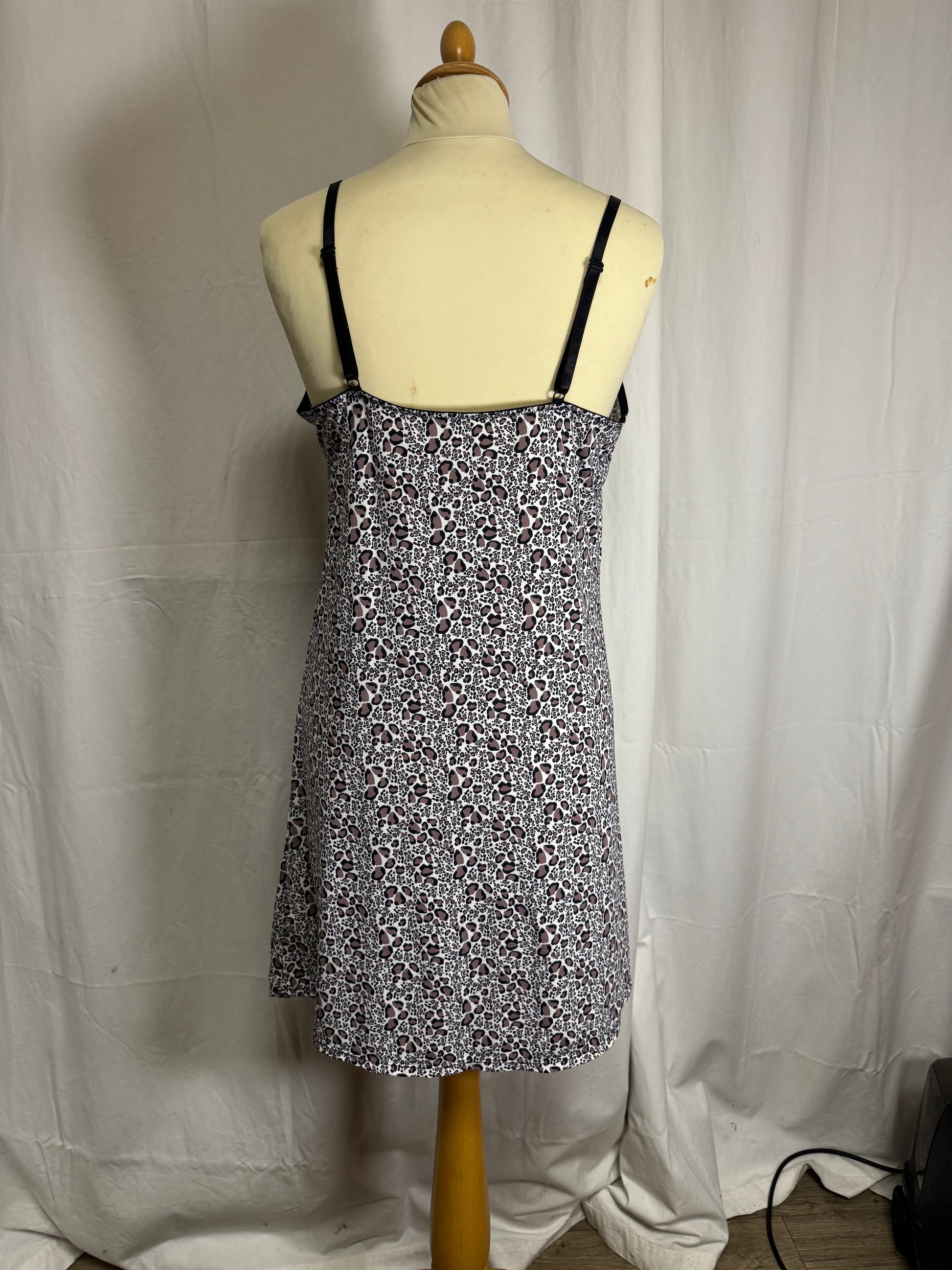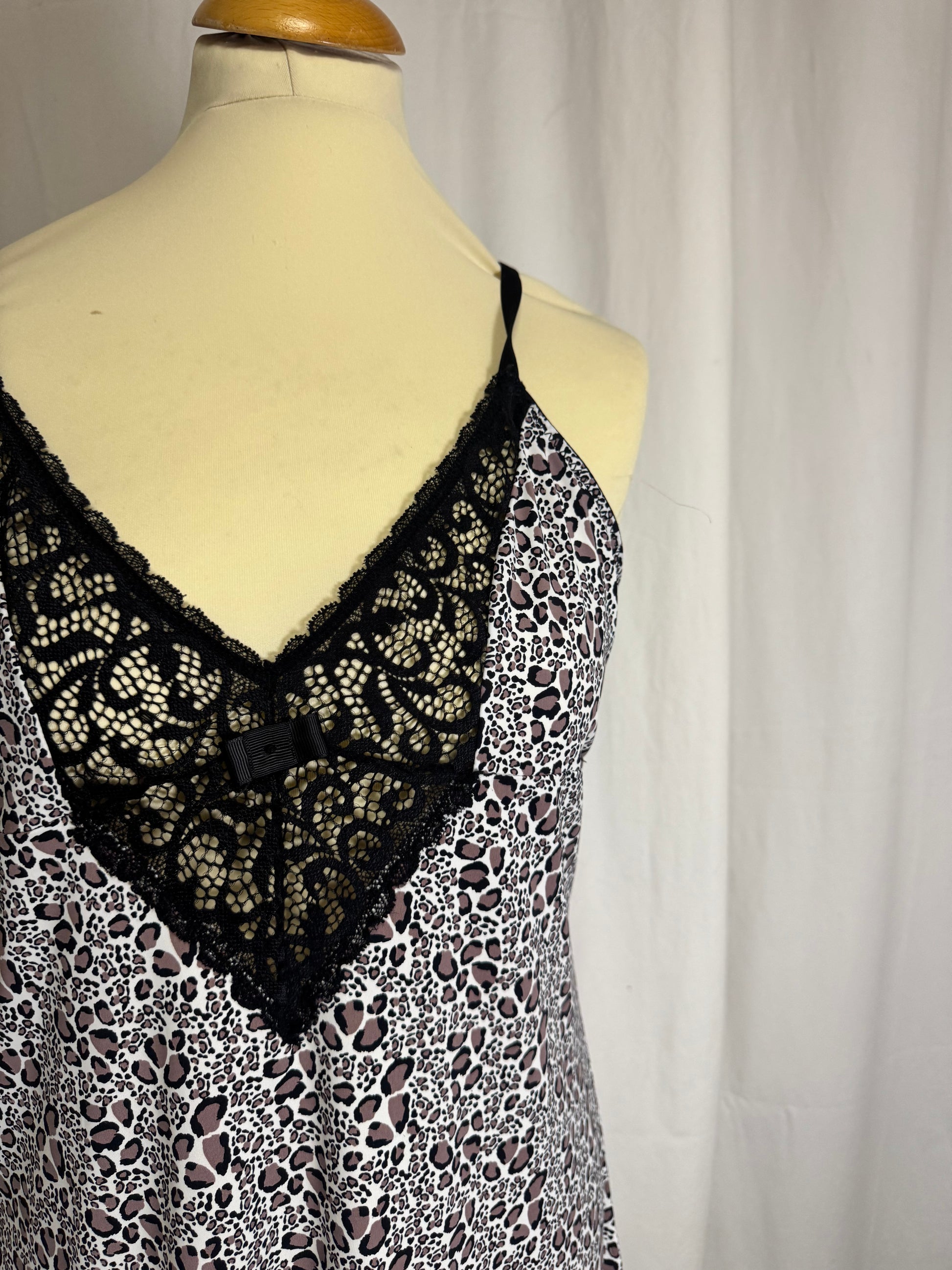 Nuisette léopard, dentelle transparente noir sur l'avant, bretelle ajustable.