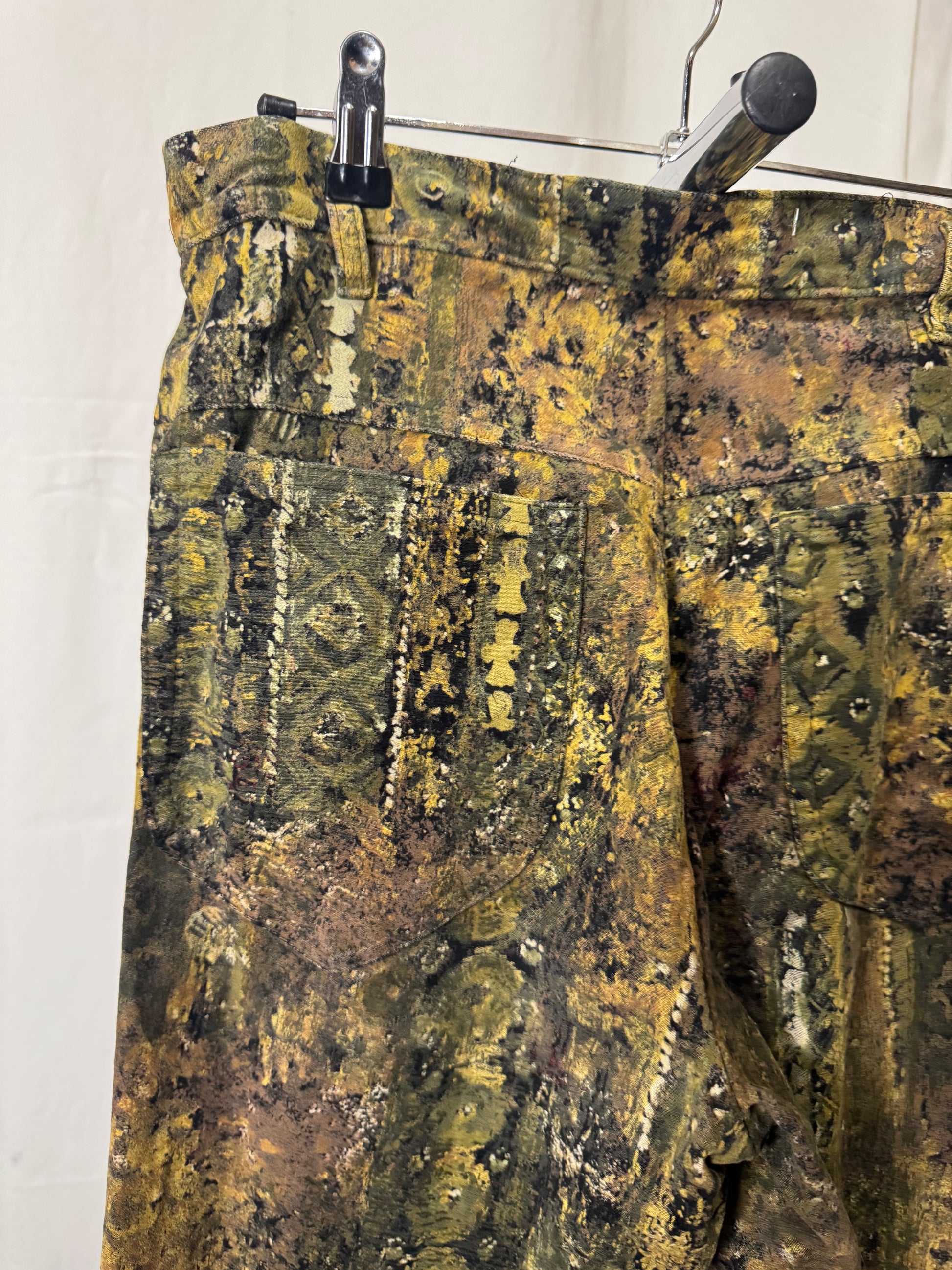 Pantalon ajustée, motifs abstrait dans les tons marron et vert, quatre poches, taille haute.
