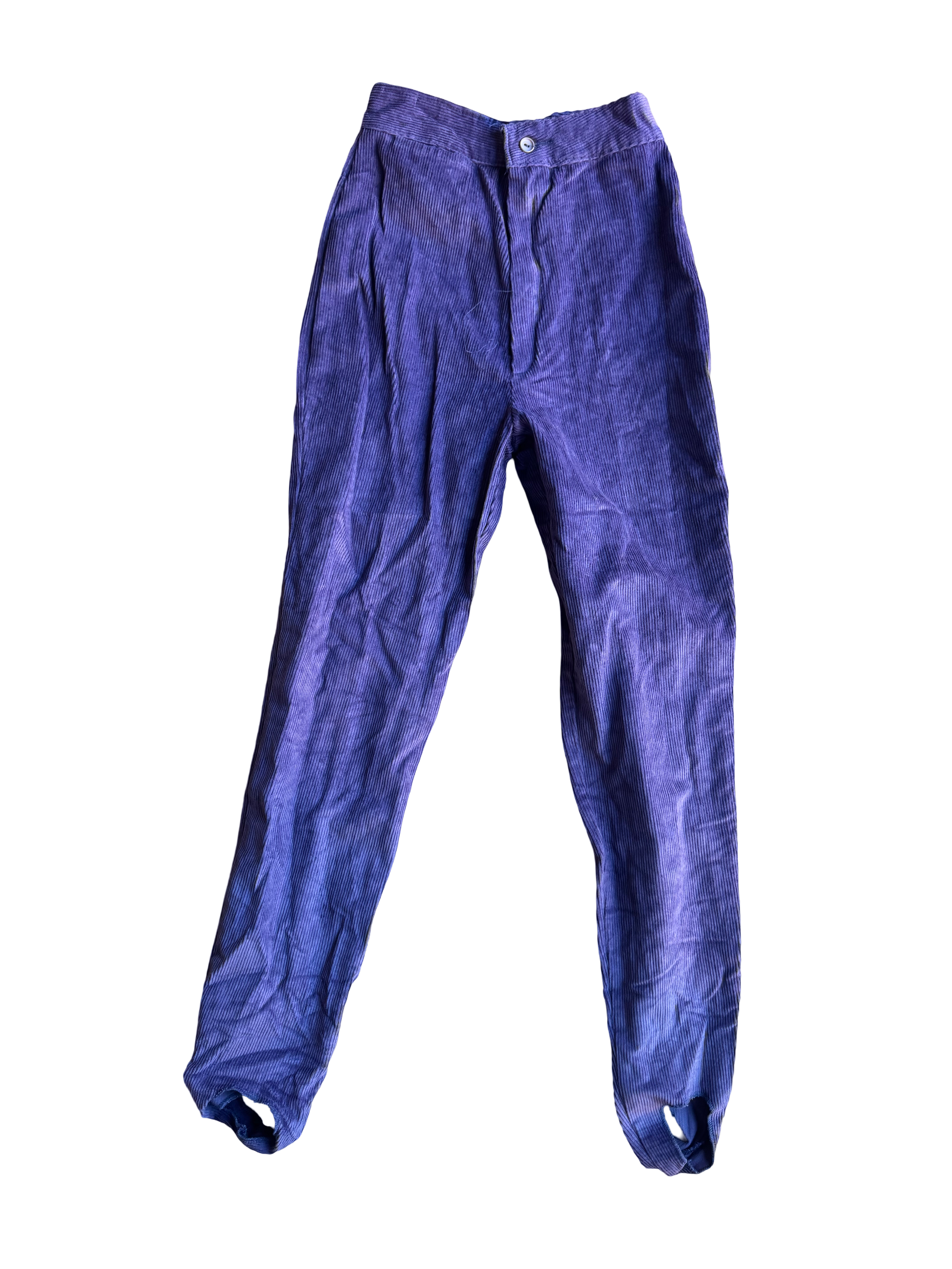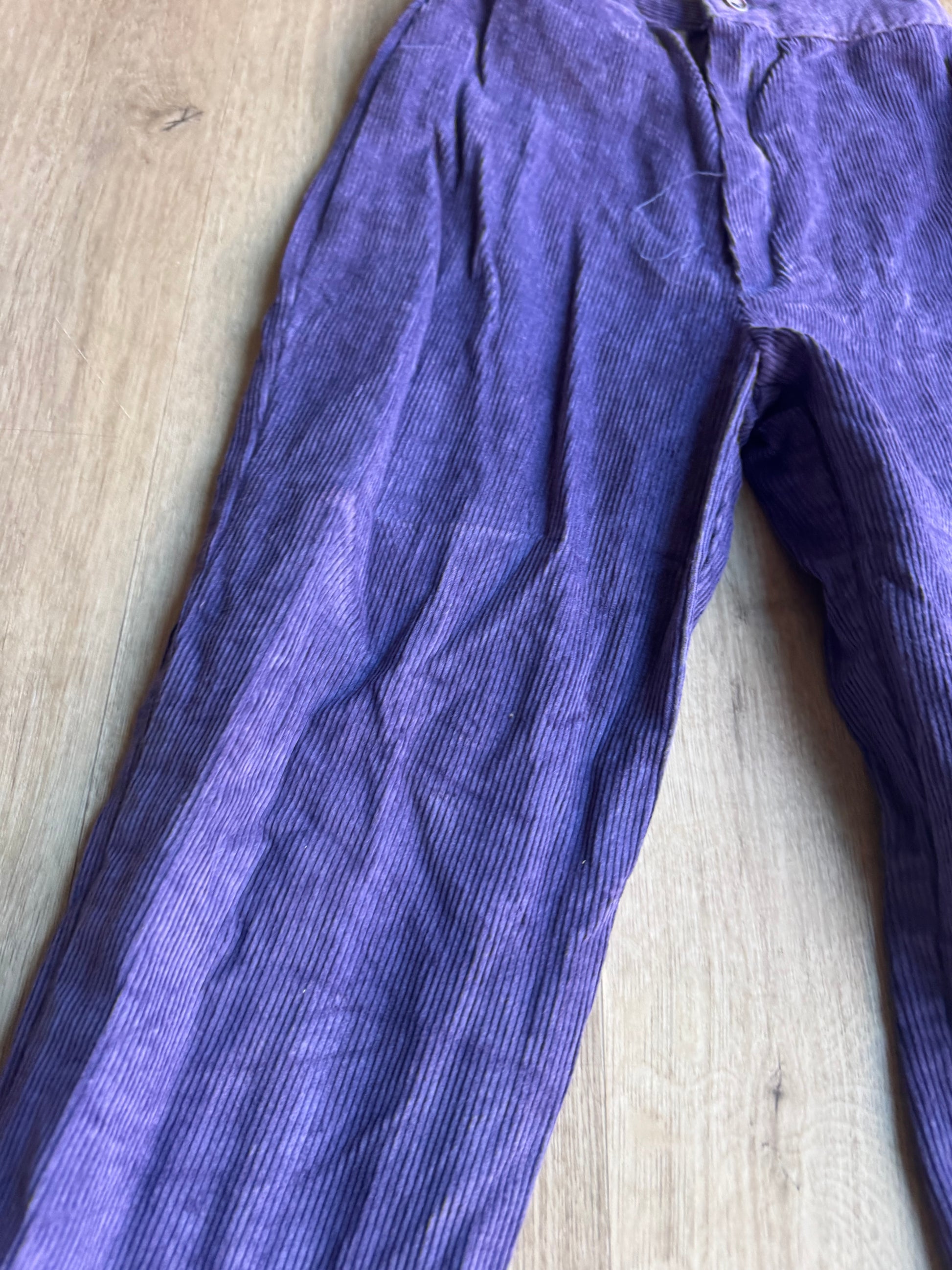 Pantalon fuseau en velours côtelés violet, année 80, une poche.