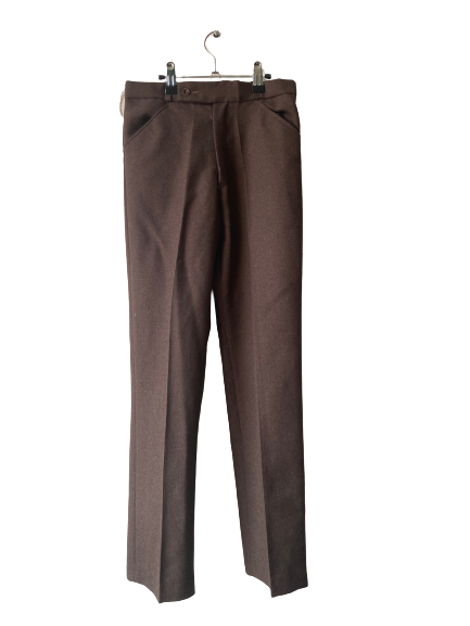 Pantalon marron des années 70, coupe droite taille haute, trois poches, passant pour une ceinture, made in Belgium