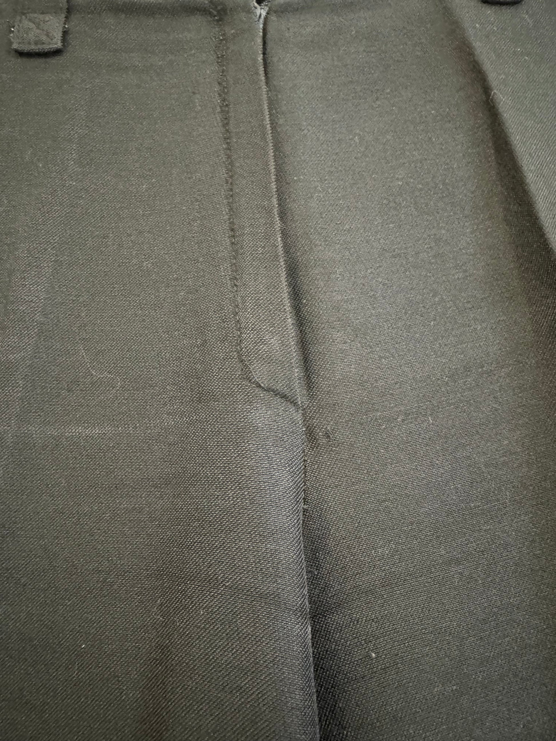 Pantalon noir des années 70, jambe large, passant pour une ceinture.