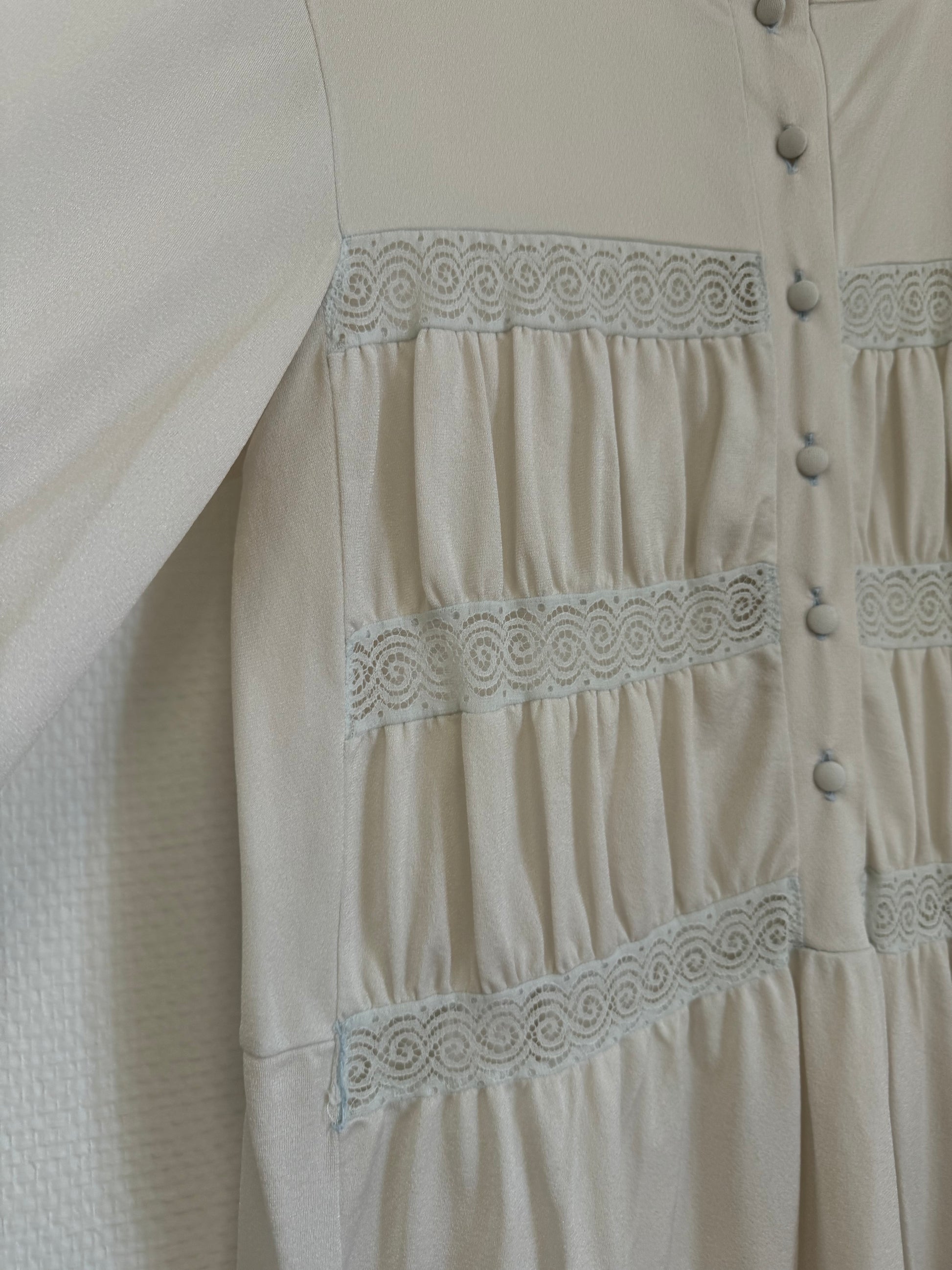 Robe longue, manche longue, ajourée par endroit,