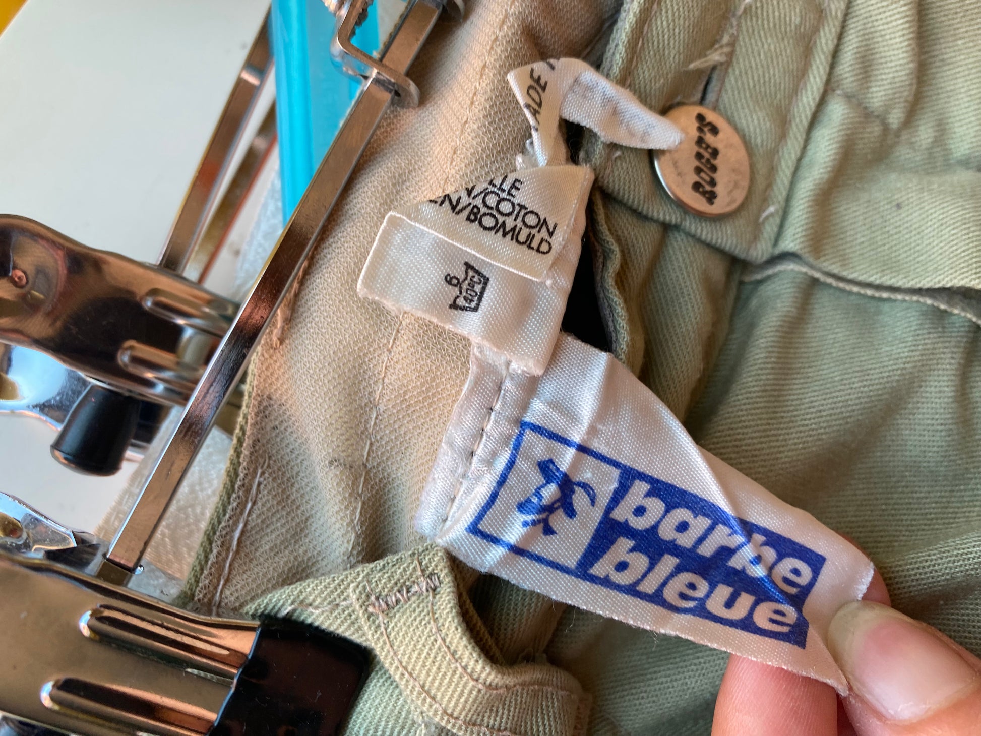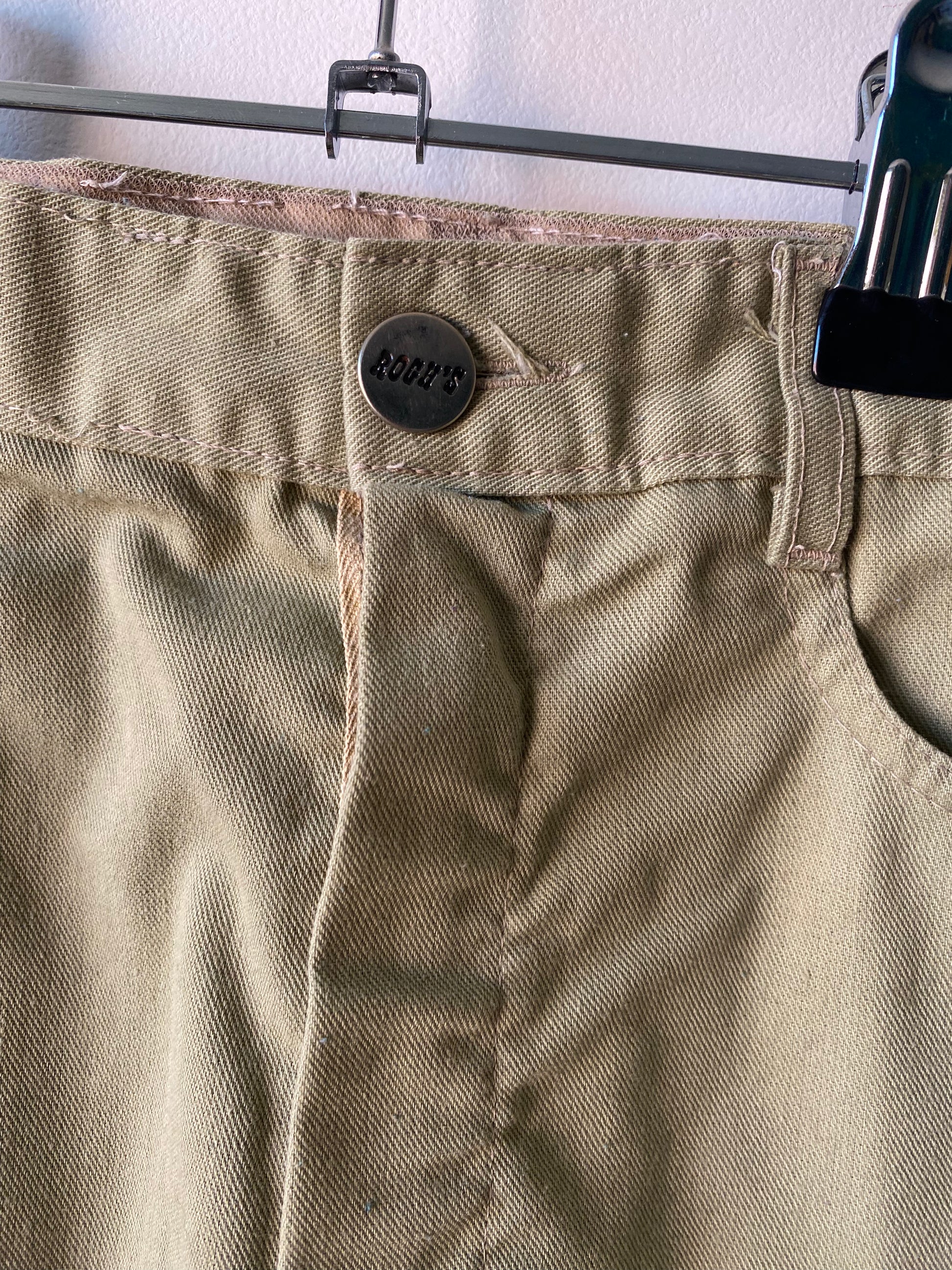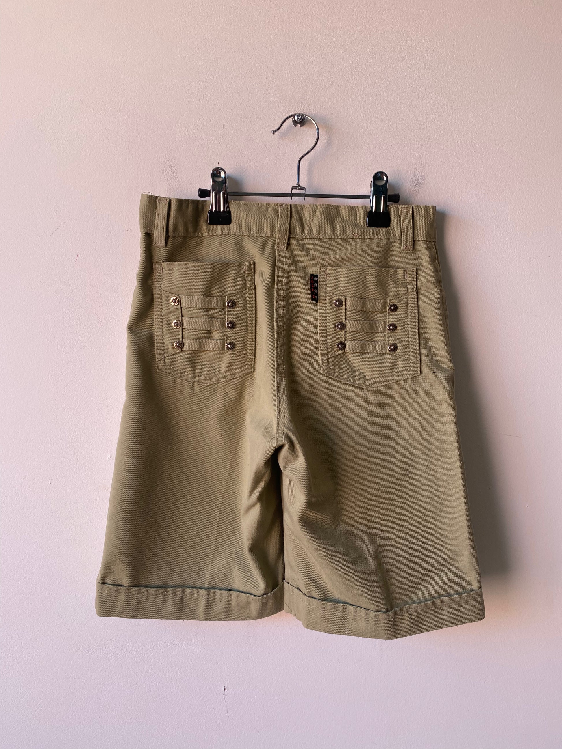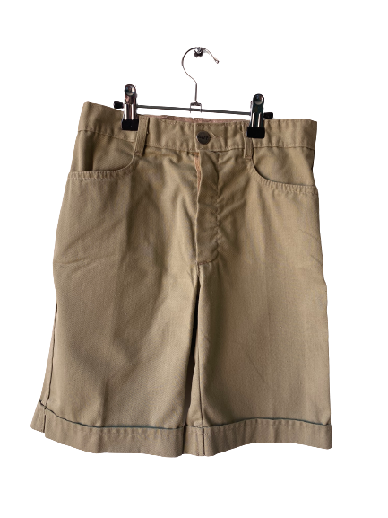 Short mi long des années 80, vert kaki, quatre poches, passant pour une ceinture, made in france.