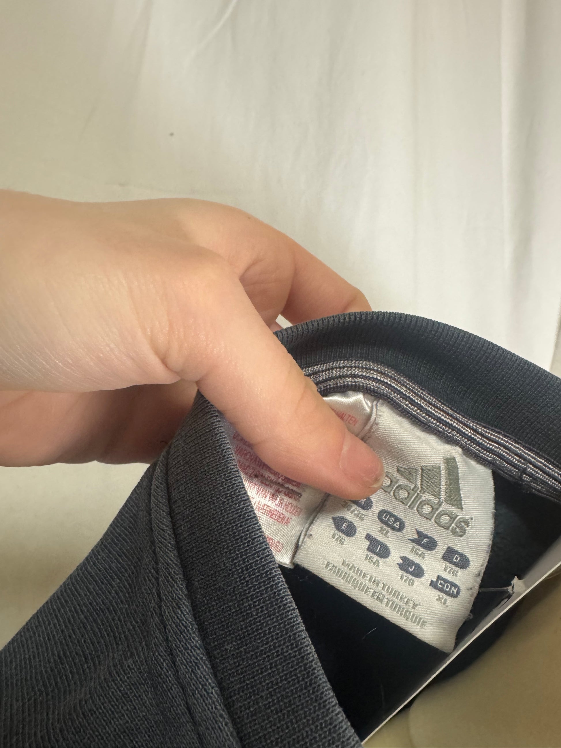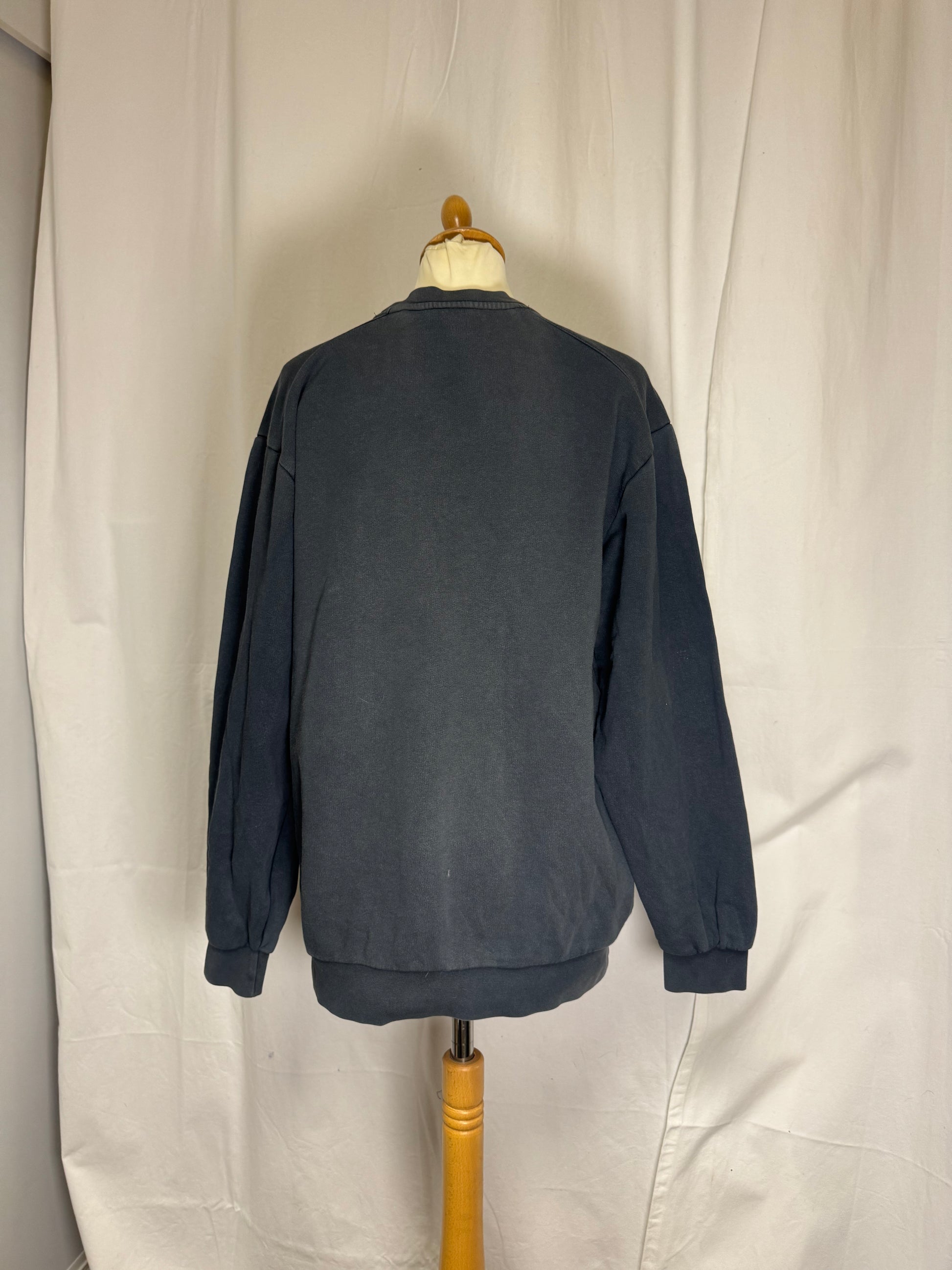 Sweat bleu/Gris, col rond, broderie sur l'avant.